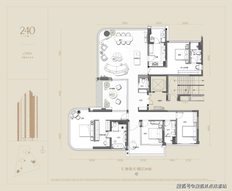 240㎡四室两厅四卫三阳台,大面宽空中花园: