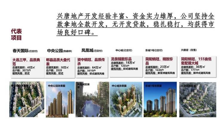 兴唐集团,致力于打造精品住宅,公司开发商全款拿地,全款开发,无任何开发抵押贷款,成都本地开发商,资金实力雄厚!项目21栋住宅已全部封顶后才开售!