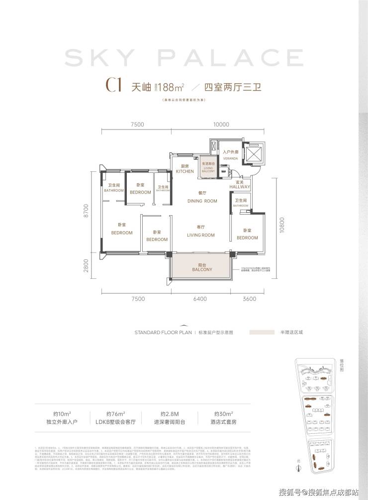 约10㎡独立外廊入户,让归家更有仪式感;约76㎡奢尺双厅,生活进阶的极致享受;双套房设计,营造更自在的家庭氛围感;约2.8M进深阳台,轻松打造全龄休闲场