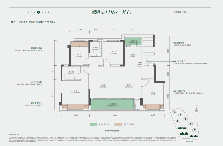 户型亮点:约14米超大主景观面;约5.7米大面宽横厅。