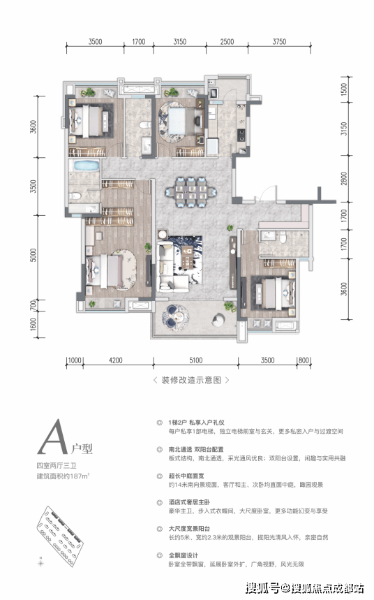 9、【户型设计】187㎡起步的阔绰空间,树立区域改善新标杆。