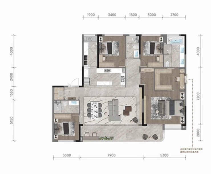 C1户型|叠拼|建面约238㎡|四房两厅四卫