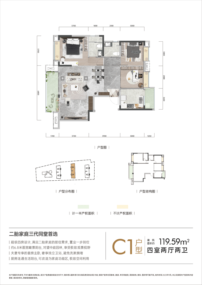 6. 全明通透户型:创新"四明"户型设计(明厨、明卫、明厅、明室),实现全天候阳光入户。