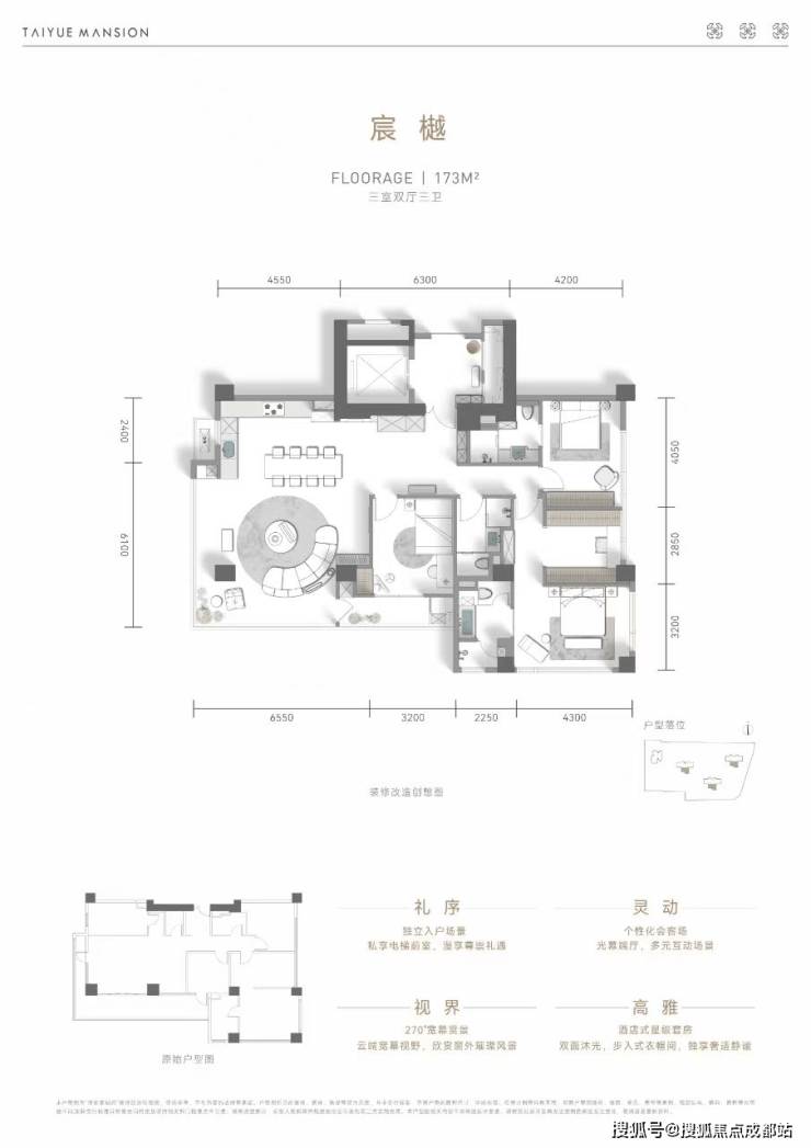 天际大平层:约173/184/220㎡