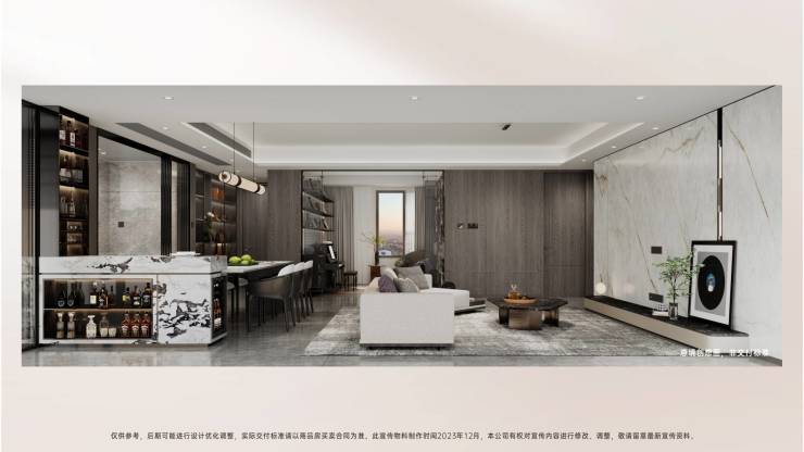 豪华星级公区:在TOP级产品云河颂基础上迭代升级,以蓝眼睛奢石和270°弧形超白玻璃打造入户门头。公区定制陶瓷大板背景墙和巴黎冰玉石材地面;车库归家,打造劳斯莱斯星空顶地下光厅;星级双大堂配置,定制蓝金沙奢石岩板背景墙,采用悬浮吊顶尽显大师手法。