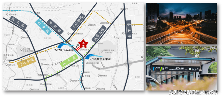 轨道交通:500米内7/8号线(理工大学站)交汇,未来7/17号线(二仙桥站)换乘;路网体系:三横三纵主干道构建全城交通网。