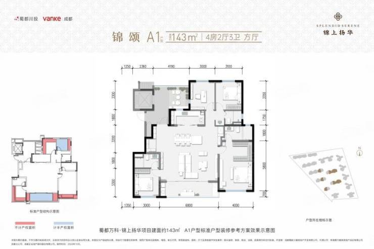 锦颂A1 143㎡ 四室两厅三卫(方厅设计)