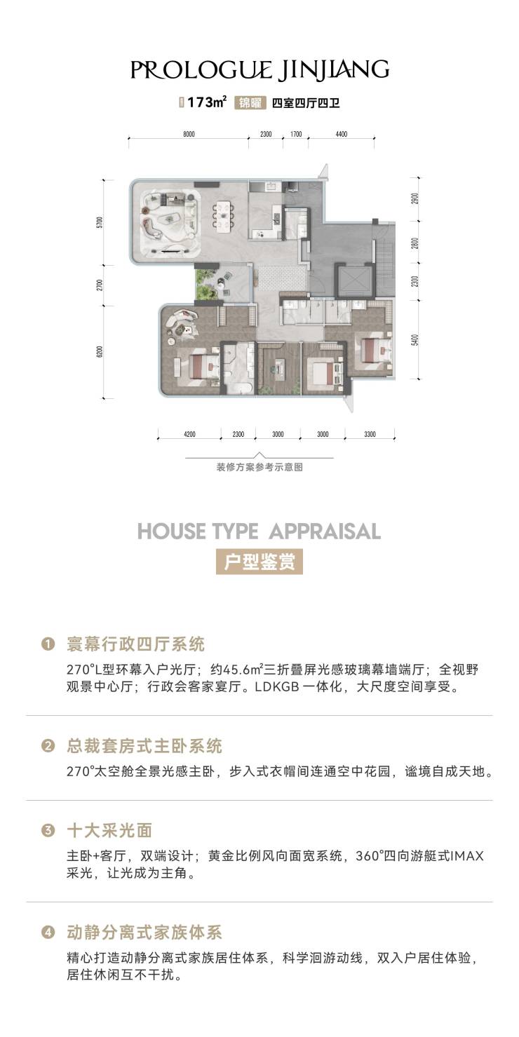 产品体系:125-173㎡瞰江平层;179-235㎡云端复式