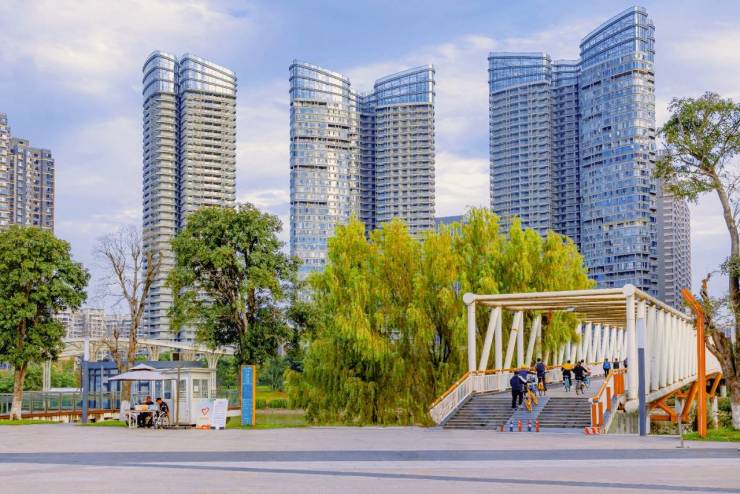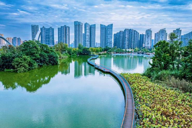 环境:直面一线江景湿地公园,通过对面1080亩江滩天鹅湖公园步行串联绕城绿道上的3大合计约6800亩高新区名片公园:分别为:1400亩的桂溪生态公园、2400亩的锦城湖公园、3000亩的中和湿地公园;如果再加上家对面的天鹅湖江滩公园和芙蓉岛公园,合计公园约8000亩,相当于700多个足球场这么大,放在整个成都都是首屈一指的。