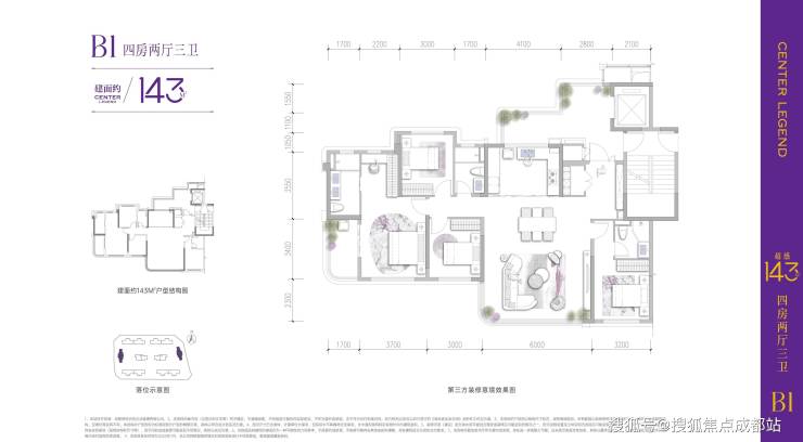 建面约143㎡ | 超感四房•光厅双厅三卫 启鸣宸序