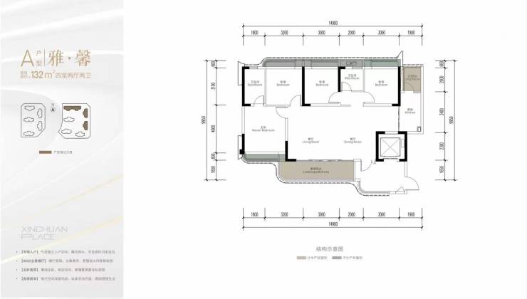 【产品面积】132㎡(套四双卫),143㎡(套四三卫 )