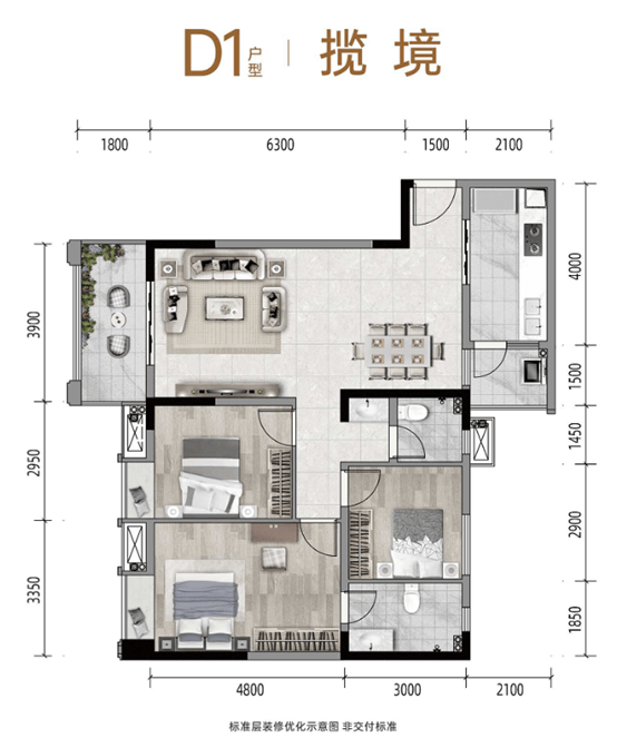 建面信息:建面约86 / 91 /116㎡ 套三双卫