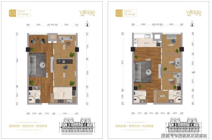 C1、C2户型 两套打通 两房单卫、三房双卫