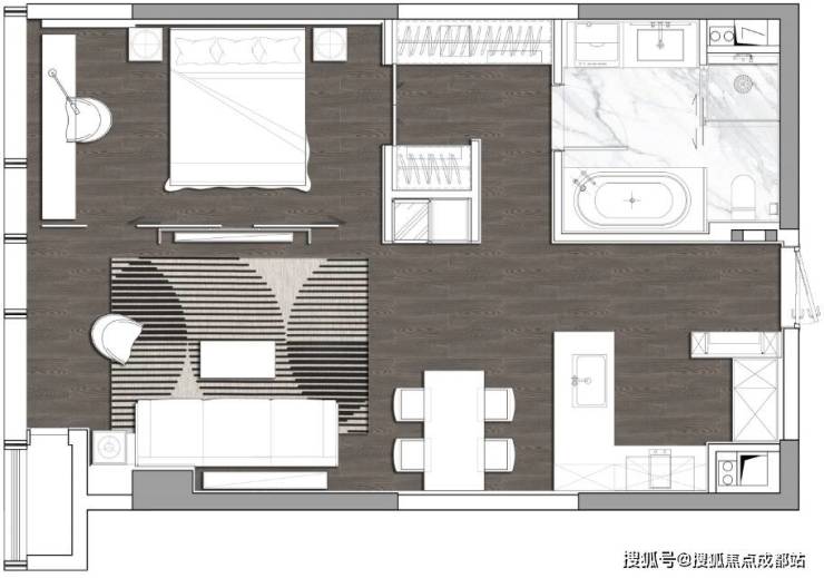 空间布局:采用精致当代的设计风格,以 “无界” 生活为设计主题,构建出 “定制私寓” 空间。客餐厨和玄关一体化的新锐布局,使空间更加开阔通透,增强了空间的互动性和连贯性。