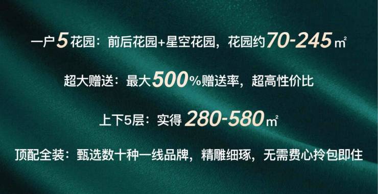 1、一户5花园:前后花园+星空花园 花园约70-180㎡
