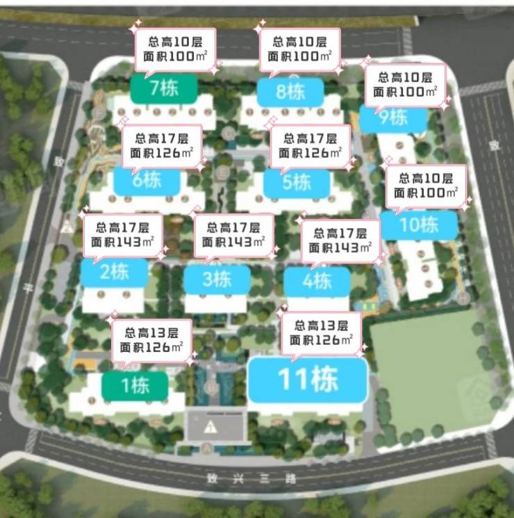 ■ 100㎡精致户型位于7-10号楼1梯2户私密布局10层低密住区16%低公摊首层架空设计半赠送阳台空间
