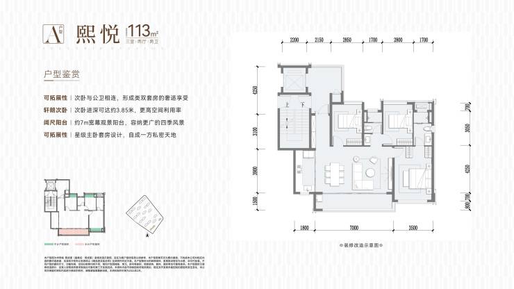 建面约113㎡ 三室两厅两卫