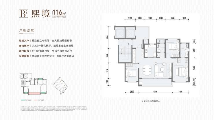 建面约116㎡ 三室两厅两卫
