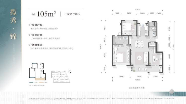 建面约:105-143㎡揽秀/156-204㎡隐翠
