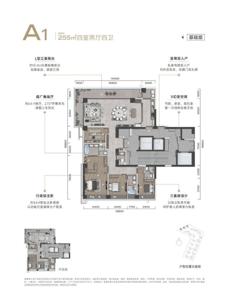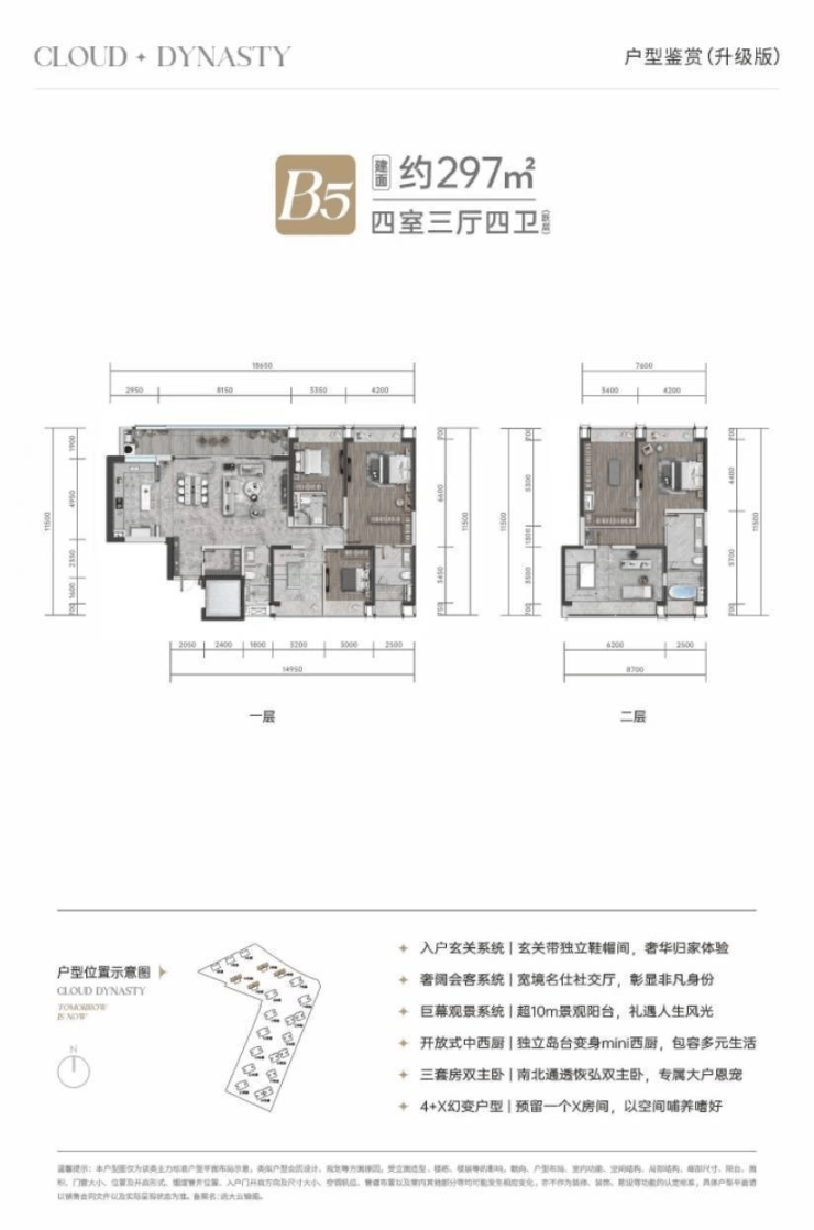 246㎡和 297㎡的跃层户型,上下两层的设计增加了空间的层次感和私密性,可根据家庭需求灵活改造空间,如打造家庭影院、健身房等,满足业主个性化的生活需求。