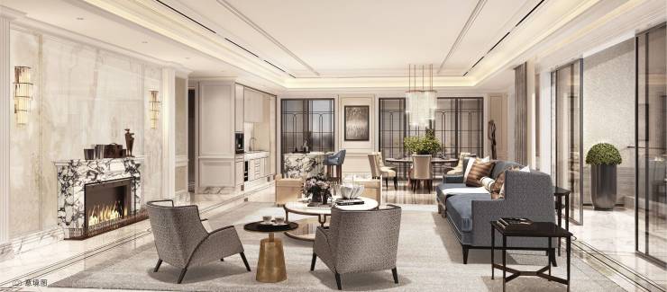 汲取美第奇家族庄园的造园概念,融入江畔立体花园模块,高层营造五大剧场式精致庭院,低密沿南北轴线规划两条林下景观廊道。
