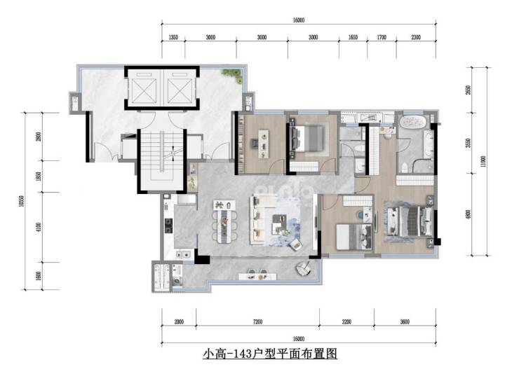 建筑面积范围:125-143㎡的宽境四居平层,190-210㎡的城芯叠居别墅