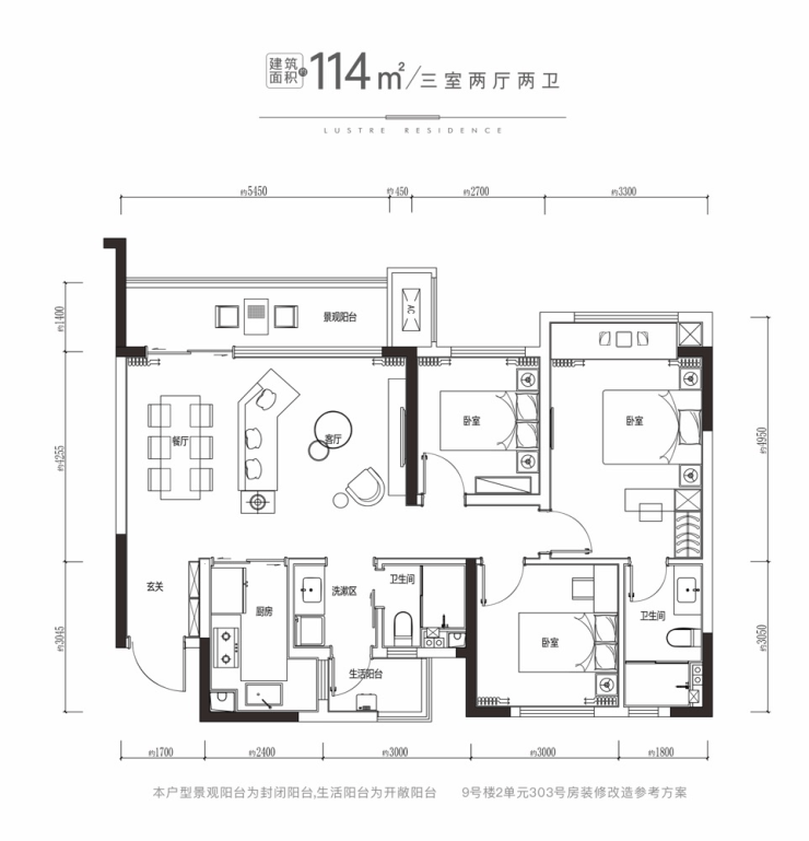 114平横厅套三双卫(总高26层,3梯6户)总价180万起
