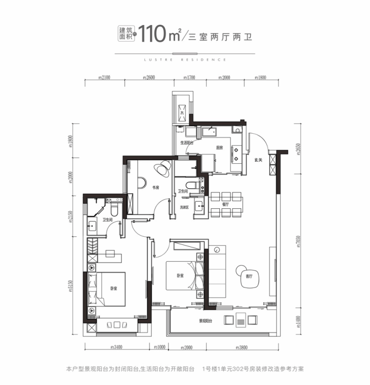 110平小高层(总高17层,2梯4户)总价180万起