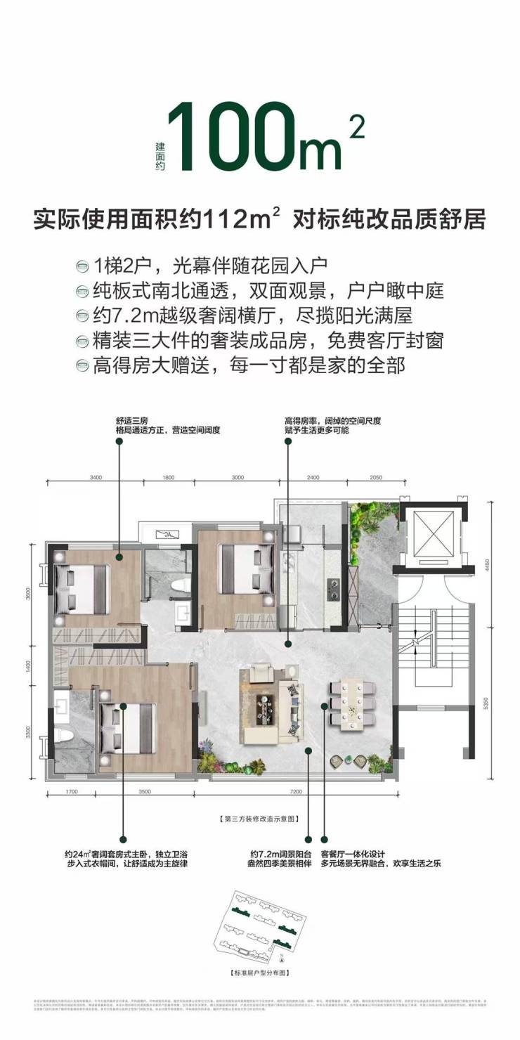 主力户型:100-130㎡(三至四房全能户型)