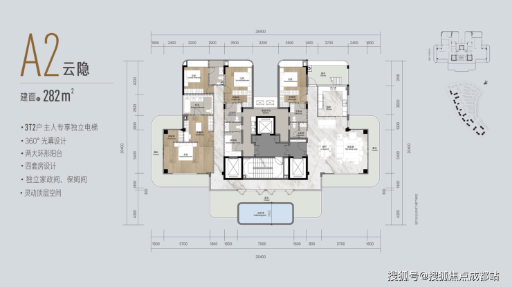 5、最强产品:约35m2U型环幕露台,270°广阔瞰景视野;约3.3-5.8米奢阔层高;3梯2户主人独梯,约2.2米超大电梯进深尺度,成都豪宅NO.1。