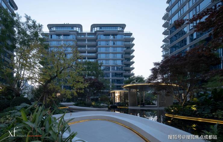 3、度假式景观园林:八大景观主题庭院,九重叠水景观,生活与自然无界共融。
