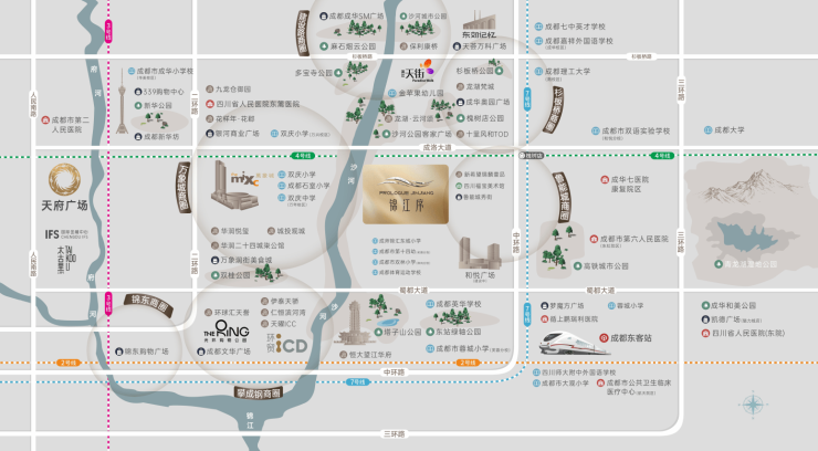 二环沿线汇聚城市千年文脉,集万象城、东郊记忆、太古里等九大地标,成就成都最具价值的生活圈层。