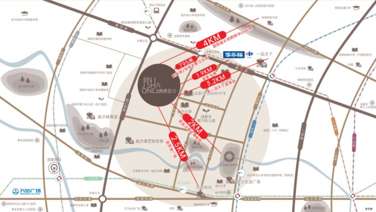 商业配套:金沙演艺综合体(1km,2024.12交付),一品天下美食街、龙湖西宸天街、西单商场、西村、优品道广场、家乐福、仁和春天