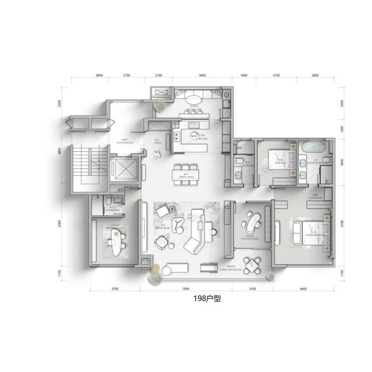 私密配置:143-198㎡采用2梯2户,248㎡实现整层专属的一梯一户格局