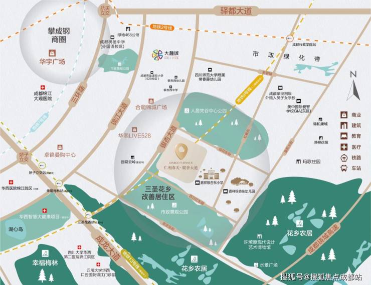 成都东南位置,横向南通金融城,东至行政学院;纵以驿都大道为线,内连攀成钢-东大路,外接绿地468、行政学院TOD,区位优越。
