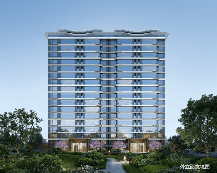 ▋ 超流体美学立面:区域新房仅有景观阳台封窗,配以弧形铝板线条,豪宅外立面即视感。