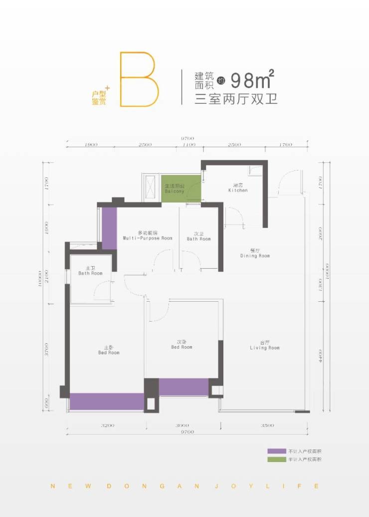98㎡三房:经典竖厅设计,三面采光,动静分区