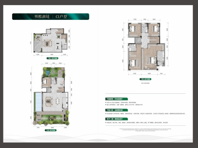 三庭:各具特色。 森屿度假中庭 ,营造出度假般的悠闲氛围,躺椅、绿植、阳光交织,让您足不出户就能享受度假的惬意; 浮岛臻享中庭 ,以独特的浮岛景观为亮点,搭配精致小品,是邻里交流、放松身心的优选之地; 水映会客中庭 ,灵动水景与会客空间完美结合,在这里接待亲友,于潺潺水声中畅谈,尽显尊崇。