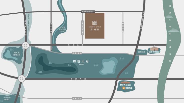 立于城市轴线之上。东进主轴:崑崙御x 拾光谷立于东进主轴成洛大道之上,择址龙泉驿区副中心西河,为龙泉驿区规划“一心三极、两轴一带”的创新驱动极,发展丰富的产业园区,享成渝双城发展及成都东进双重红利。