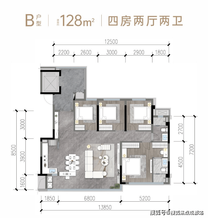 四房高阶配置:128㎡比肩143㎡,打破常规尺度,满足高定生活需求