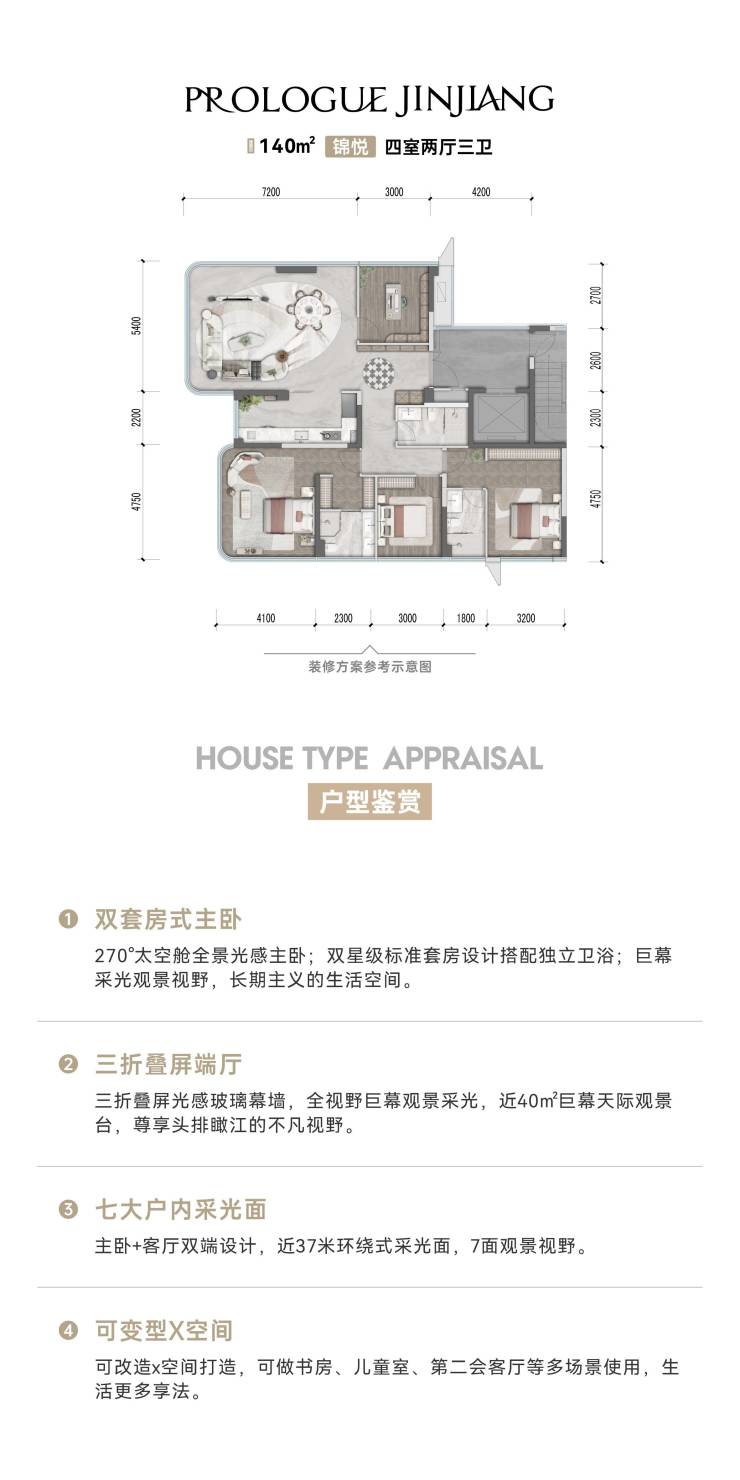 产品体系:125-173㎡瞰江平层;179-235㎡云端复式