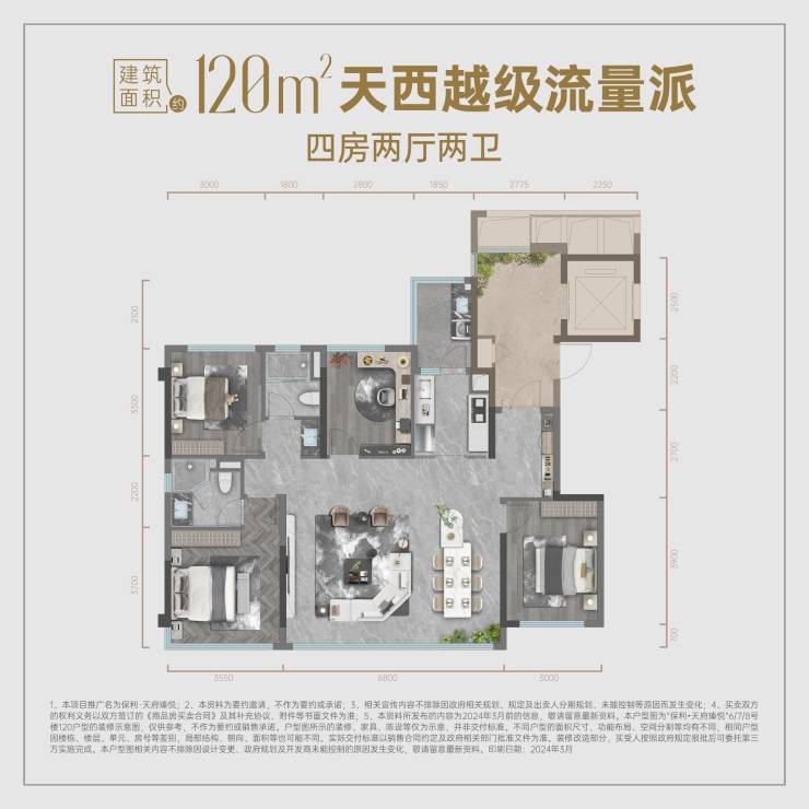 保利天府瑧悦坐拥48亩臻稀地块,采用2.3低密规划,打造20%建筑密度与35%绿地率的生态住区。项目匠心规划15栋纯板式住宅,共计496套120-188㎡四房改善产品,实现南北通透的奢阔空间体验。