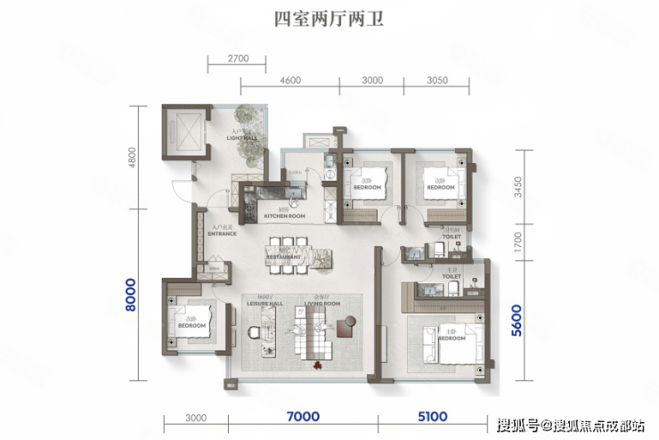 1、采用2梯2户纯板式设计,129-199㎡全系四房户型,满足不同家庭阶段的居住需求