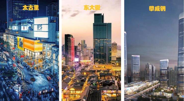 主轴之上:太古里商圈-东大街商圈-攀成钢商圈-行政学院商圈-世贸商圈-及未来的奥莱商圈-一路向东直达千亿经开区