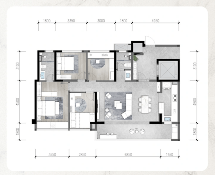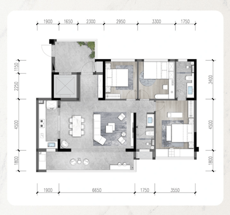 云境128㎡:南北通透三居,约7.2米景观阳台