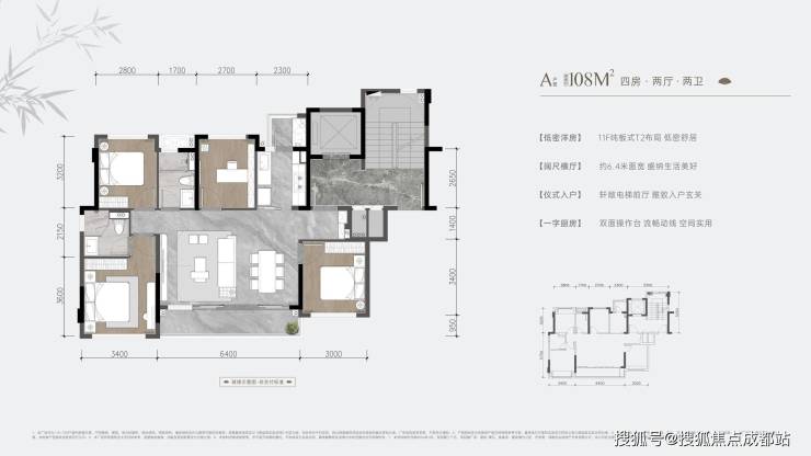 设计亮点:全明空间,6.4米横厅+双面宽阳台,主卧套房设计,独立玄关收纳。