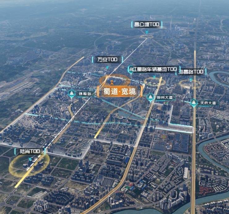 交通:蜀道·宽境,作为总规模约870亩万安TOD的上盖项目,天然占据新川发展“轴心”的重要地位。家门口就是新川中轴——地铁6号线,上接软件园、金融城,下连天新中央商务区、秦皇寺,且与约10000㎡的浮岛商业街无缝连通,既可为通勤、生活带来极高的便捷性,又能提升房子的生命周期。同时,万安TOD横向可串联海昌路TOD(规划中)、红星路车辆基底TOD,纵向又可连接陆肖TOD、昌公堰TOD,再叠加地铁6、15号线(规划中)双轨交,未来将高度聚焦城市优质资源,驱动区域生活缤纷生长。