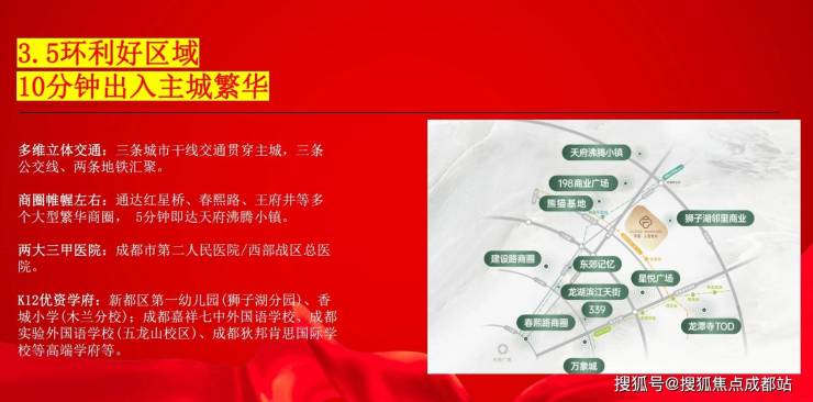 拥揽三纵三轨立体交通路网。蜀龙大道为项目的主干道,向北通往新都城区、向南可到达市区,经蜀龙大道到三环和绕城入口仅需5分钟左右车程,由三环和绕城高速通达全城,经蜀龙大道去往建设路商圈,全程高架无红绿灯,仅需15分钟左右。距离23号线,熊猫基地站500米,在项目门口,有661A、666、659路等公交车,均开通接驳地铁1、3号线站点,未来也会有交通路线与8号线地铁站点接驳,实现与地铁无缝连接。