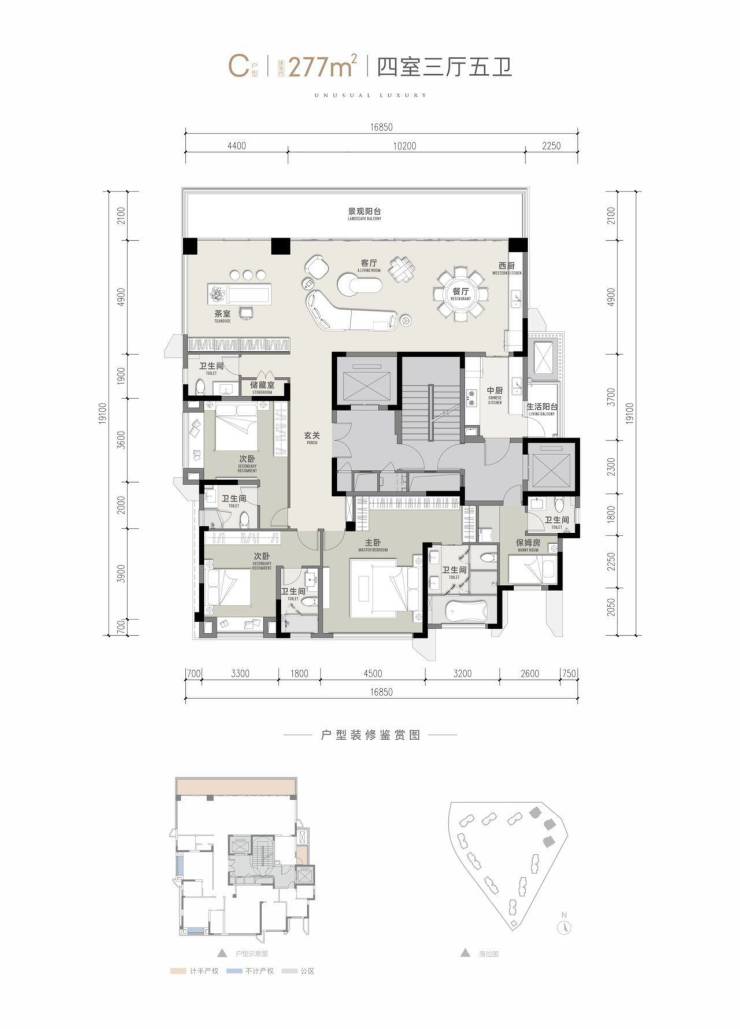 建面约277㎡两梯一层一户