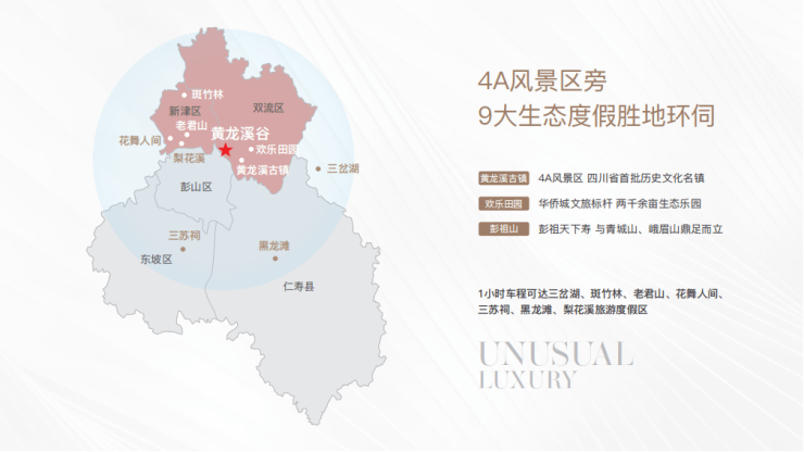 本项目→4A景区黄龙溪古镇/4A景区彭祖山/三岔湖/花舞人间/梨花溪等9大富氧文旅胜地